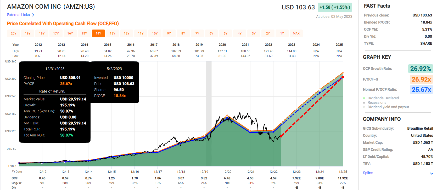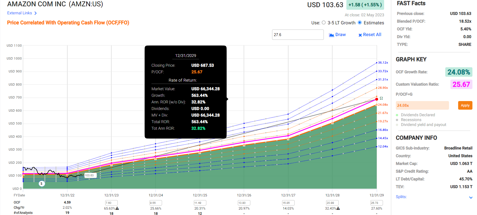 - AMZN remains 30% undervalued despite a 30% rally since October, is growing free cash flow at 45% annually, and has a PEG of 0.49, hyper-growth at a wonderful price.