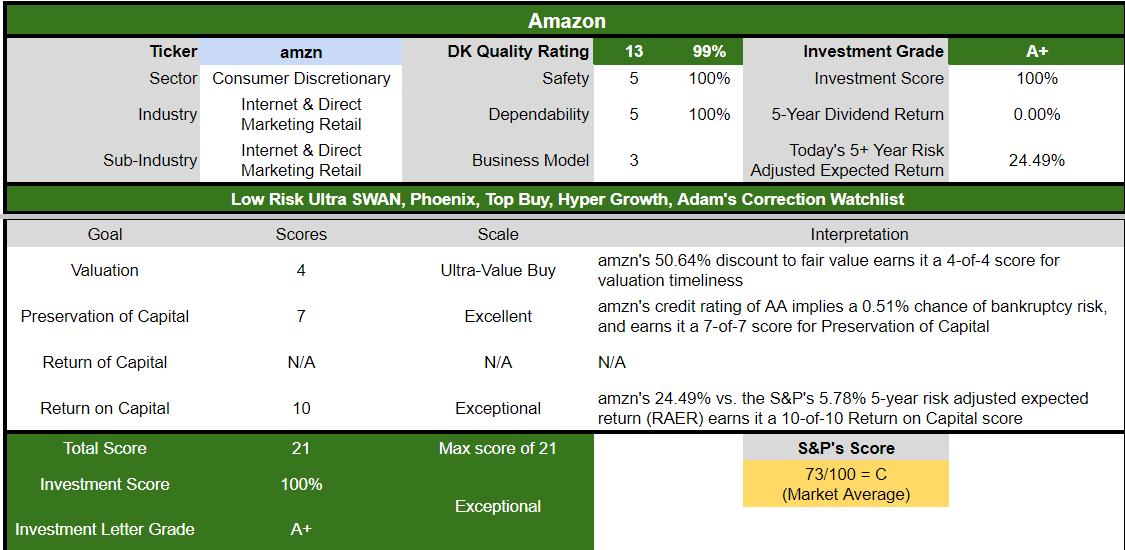 | Amazon | 68 | Above-Average (Bordering On Good) | Low Risk |