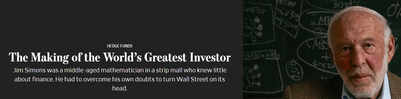 You’ve probably never heard of Jim Simons, but he’s a legend on Wall Street and the “man who solved the market.” Jim Simons is a U.S. mathematician who founded Renaissance Technologies in 1982. It became the most successful quant hedge fund in history.