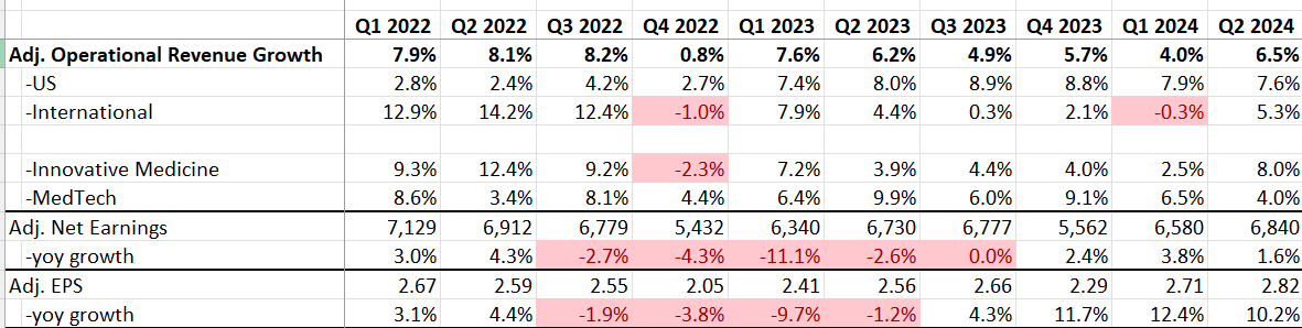 Additionally, Johnson & Johnson’s APAC business only grew by 1.9% in the quarter, due to sluggish growth in China. Due to the decline in domestic property and stock market, the Chinese economy is facing strong growth challenges. I expect the domestic healthcare sector in China to continue experiencing weak growth.