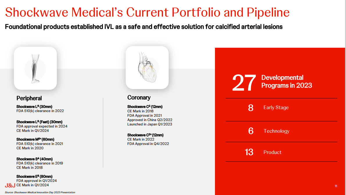 - As disclosed in the announcement, Shockwave possesses a strong product pipeline in the CAD and PAD markets, as presented in the slide below. Additionally, Shockwave could potentially expand its IVL technology into other markets, such as carotid artery disease and structural heart disease.
