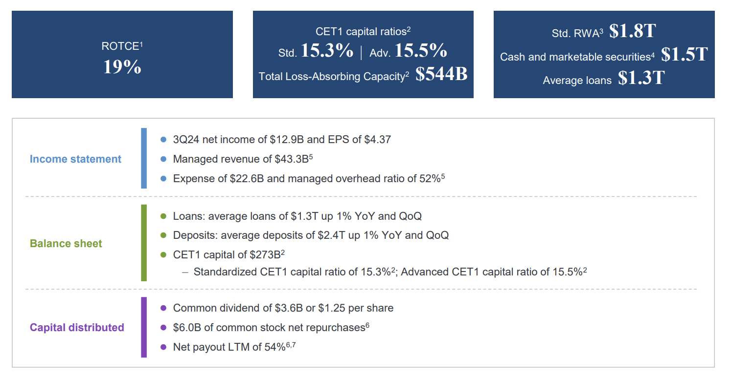 • The bank reported 3Q net income exceeding $50 billion annually and maintains a strong CET1 capital ratio of 15.3%.