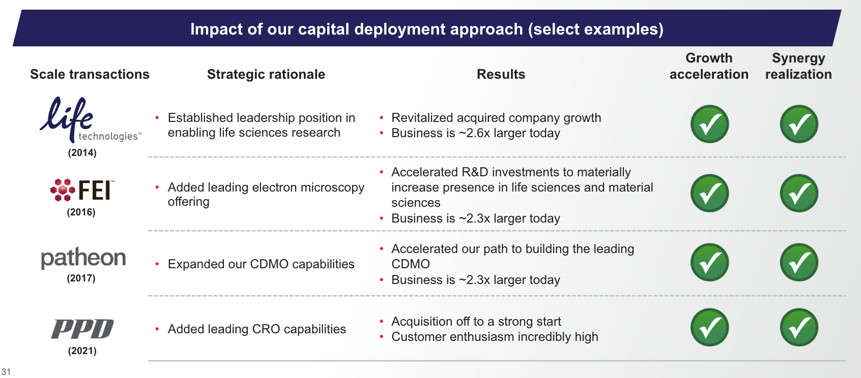 This includes PPD and Patheon, which have significantly improved the company’s service offerings and deepened its relationships with biopharma partners.