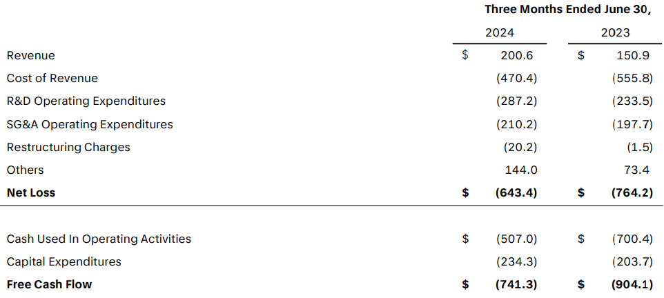 What I dislike about Lucid, fundamentally speaking, is the very unfavorable earnings and free cash flow picture. The EV maker lost a solid $643M in the June quarter, and its free cash flow is highly negative as well. In the near future, investors will likely see a further decline in free cash flow as the company ramps up its spending in order to prepare its production lines for the production of the Gravity SUV.