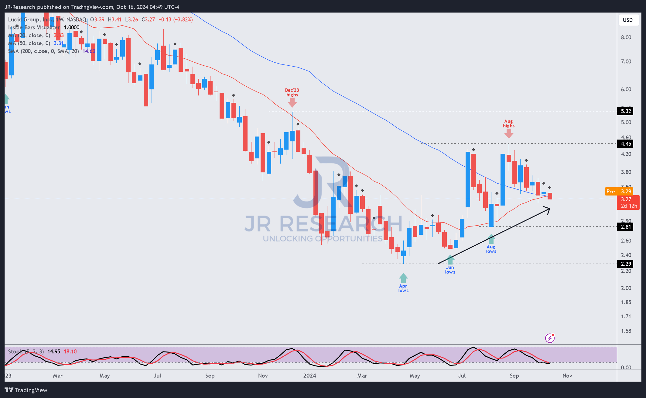 - Lucid Group, Inc. stock has outperformed since its lows in April 2024, likely stunning bearish investors.