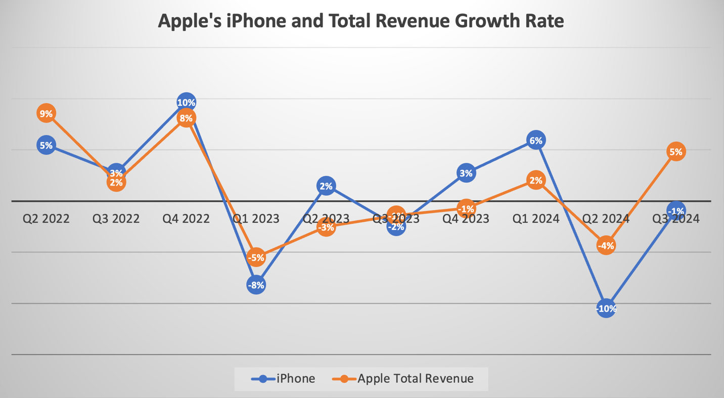 The iPhone makes up around half of Apple’s total revenue base, and its muted sales growth over the past several quarters has subsequently weighed on the entire company’s top-line.