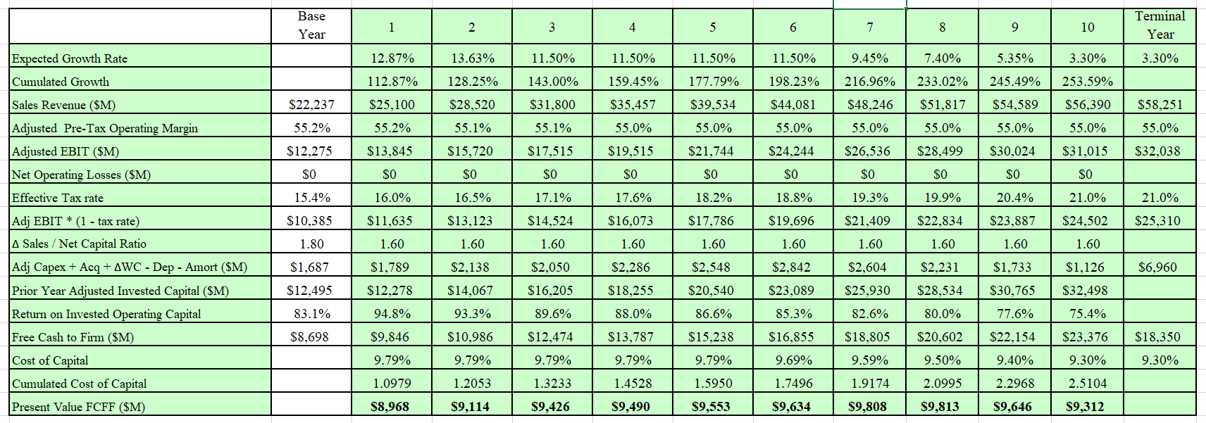 • Mastercard’s share price is yet to reflect the significant increase in its cost of capital and a corresponding decline in the value of its operating assets.