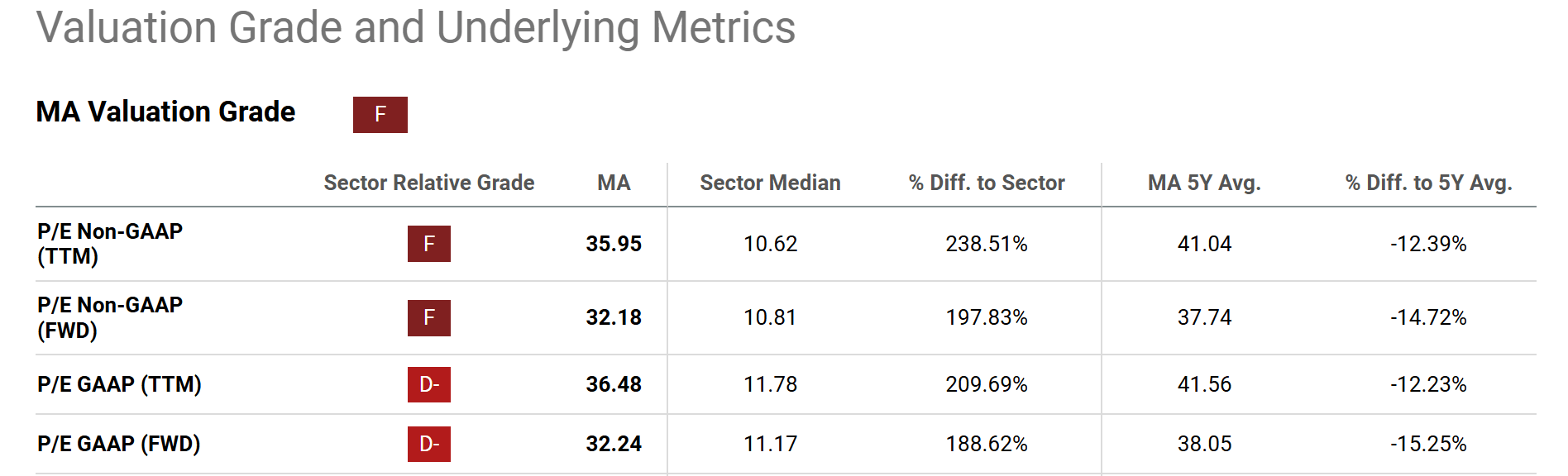 MA stock trades at 32x P/E