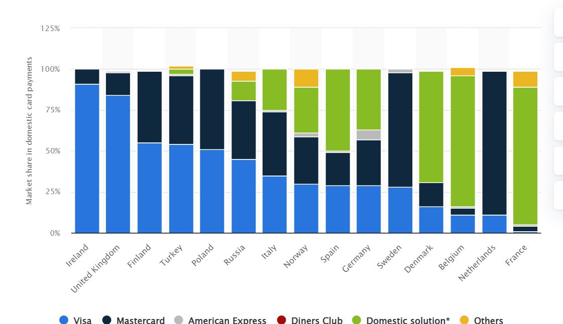 Visa has 61% of the US credit card and debit card markets, but Mastercard has been more competitive with Visa internationally in regions such as Europe. Mastercard’s large four rail network also gives the company unique competitive advantages over most local competitors in emerging markets in regions such as Latin America, Central and Eastern Europe, and Southeast Asia.
