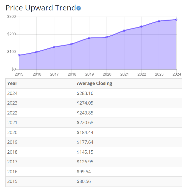 In addition, the average one-year price target for this stock is $299.03, which is about an 7.9% increase in a year.