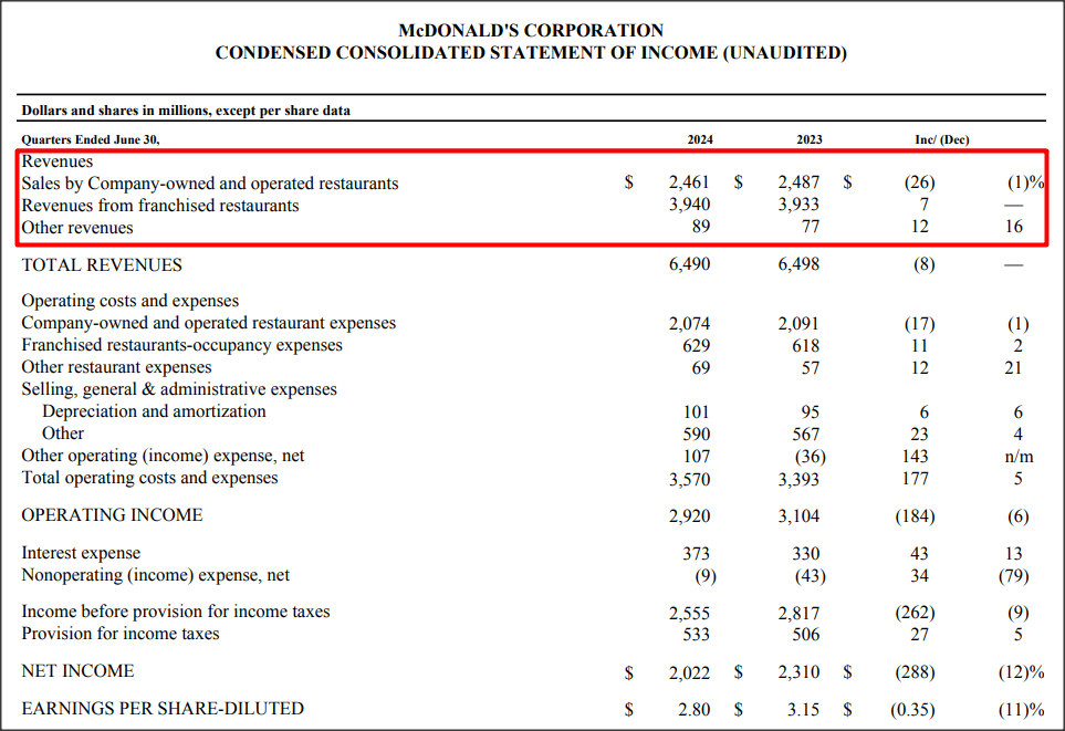 On the positive side, McDonald’s reported solid operating income profitability. The fast-food chain achieved $2.9B in operating income, showing a decline of 6% year over year.