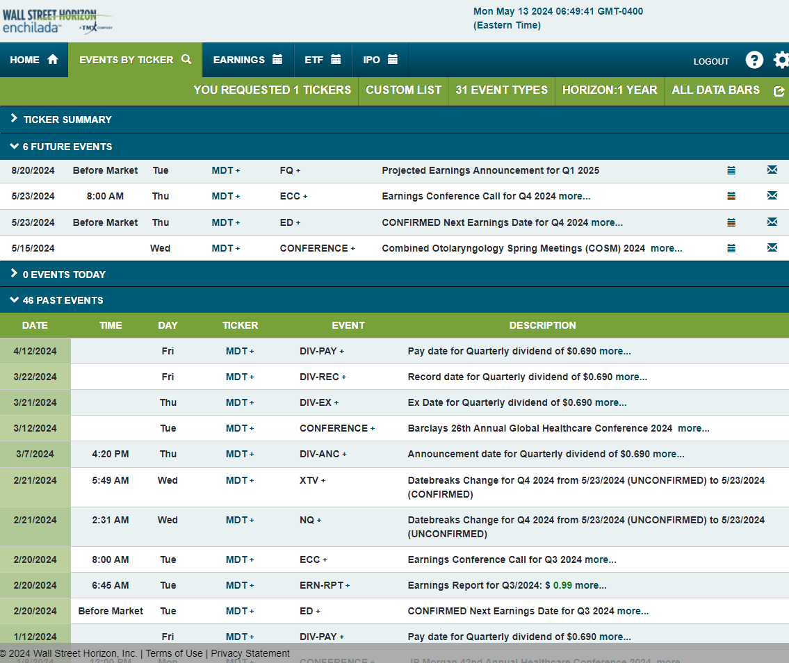 Looking ahead, corporate event data provided by Wall Street Horizon show a confirmed Q4 2024 earnings date of Thursday, May 23 BMO with a conference call immediately after the numbers cross the wires. You can listen live here.