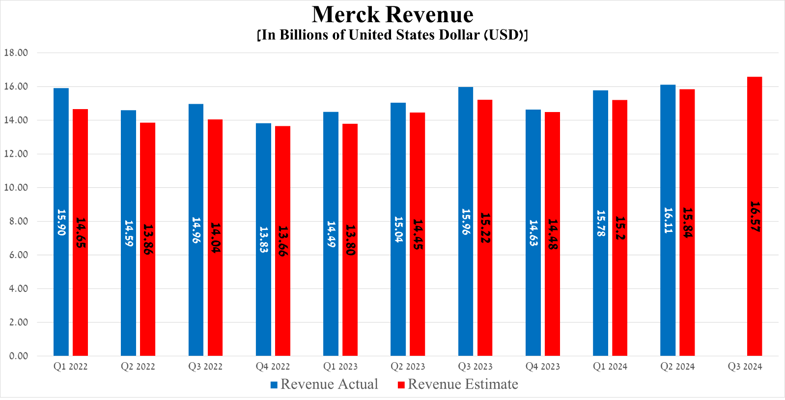 The Rahway-based company’s revenue was $16.11 billion in the second quarter of 2024, up 7.1% year-over-year and beating the consensus estimate by $270 million.