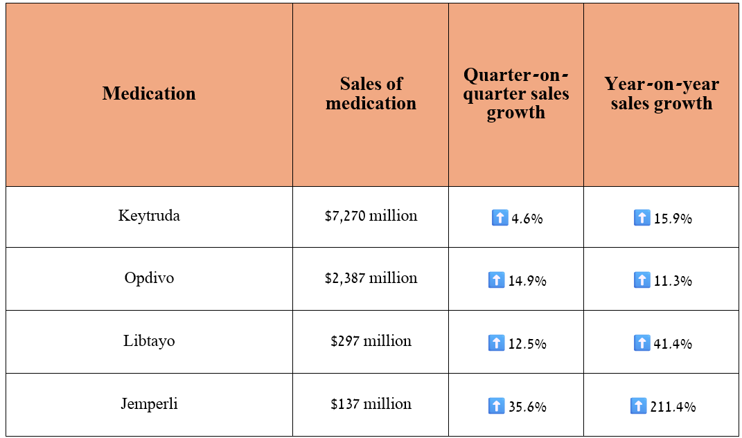 The answer is quite simple and lies in the fact that the demand for Merck’s blockbuster remains exceptionally high, especially for the treatment of patients with lung cancer, early-stage triple-negative breast cancer, and stomach cancer, despite the increasing competition in the global PD-1/PD-L1 inhibitors market from Bristol-Myers Squibb’s Opdivo (BMY), Regeneron’s Libtayo (REGN), and GSK’s Jemperli (GSK).
