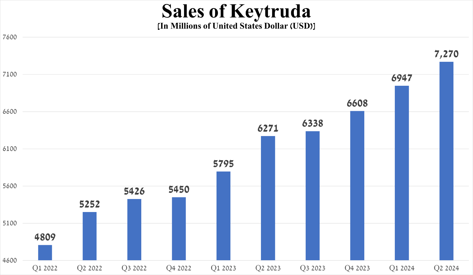 To answer this question, I would like to focus your attention on Merck’s Pharmaceutical segment, whose total sales amounted to $14.41 billion in the second quarter of 2024, increasing by 7.1% year-on-year.