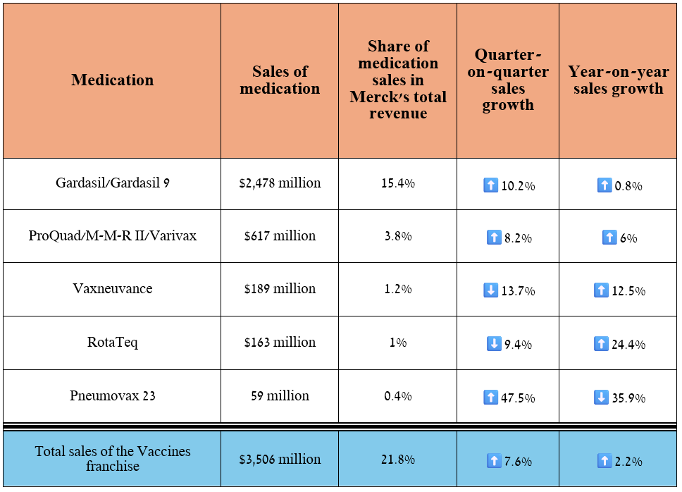 Overall, its total revenue was about $3.51 billion in the second quarter of 2024, up 7.6% year-on-year, despite falling demand for Pneumovax 23.