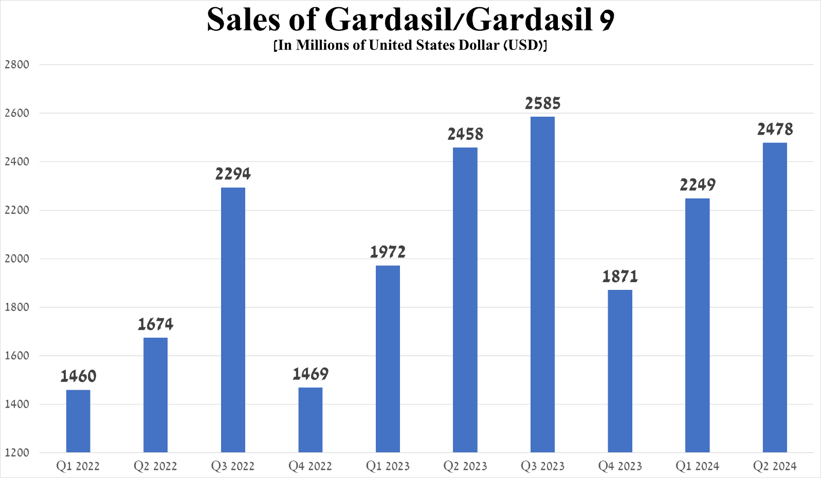 So, sales of Gardasil and Gardasil 9, which are vaccines that protect against various strains of the human papillomavirus, amounted to about $2.48 billion for the three months ended June 30, 2024, up 10.2% quarter-on-quarter, mainly due to continued strong demand in the United States and the European Union, which offset a decline in shipments from Zhifei Biological Products, the distributor of Merck’s vaccines in China, to vaccination points.