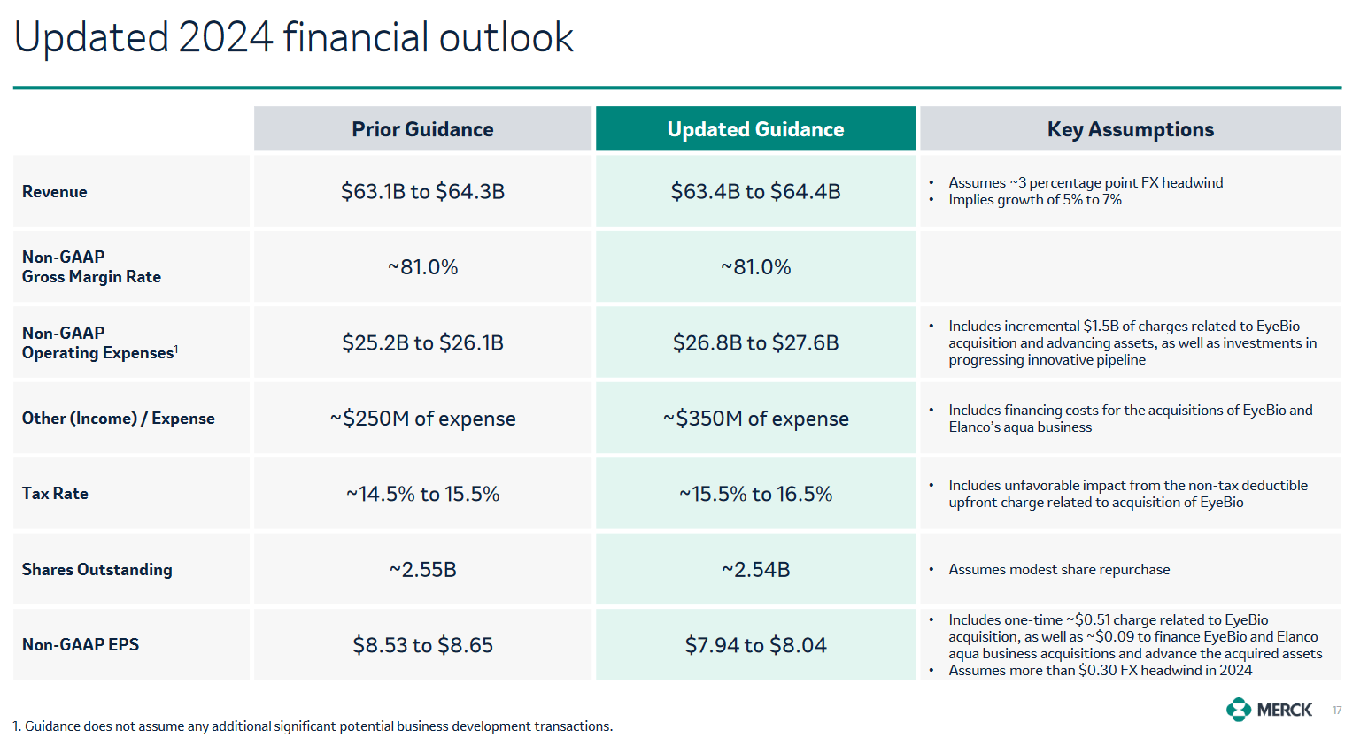 On the other hand, thanks to stronger sales of Keytruda, Prevymis, Welireg, Winrevair, and Reblozyl, the company not only beat analysts’ expectations again but also raised its 2024 full-year revenue guidance.