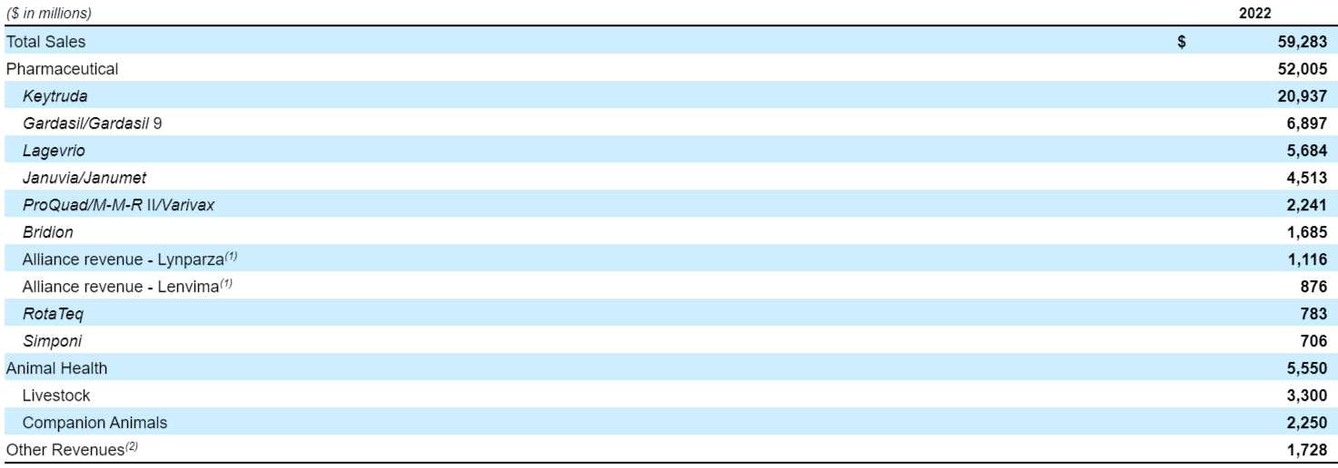 The company’s fiscal year ends on December 31 with two operating segments: Pharmaceutical and Animal Health. According to the latest 10-K report, the company’s oncology product “Keytruda” represented more than 30% of the total.