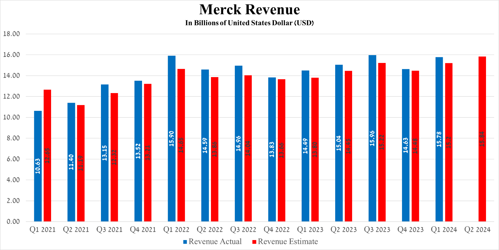 Merck’s revenue for the first three months of 2024 was $15.78 billion, up 8.9% year over year and beating analysts’ expectations by $580 million.