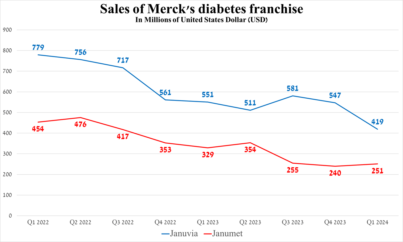 Before jumping to a conclusion, I would like to highlight some of the key financial risks that could affect Merck’s share price in the medium term. These risks include increasing U.S. annual inflation, which reduces the likelihood of the Fed cutting interest rates until the third quarter of 2024, accelerating decline in sales of Januvia and Janumet due to raised competition from generic versions in the European Union, as well as increased demand for more effective medications to treat type 2 diabetes, including Novo Nordisk’s Ozempic (NVO) and Eli Lilly’s Mounjaro (LLY).