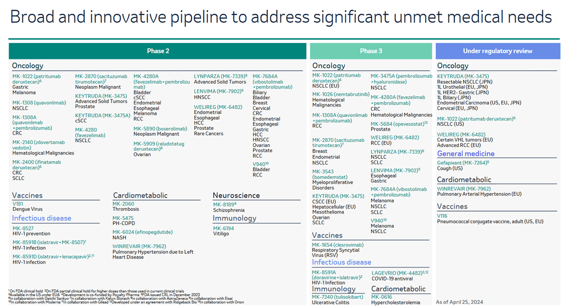 In my assessment, in addition to its experimental drugs, which will be discussed in more detail later in the article, key contributors to improving the company’s financial position also continue to be its FDA-approved medications and vaccines, including Keytruda, Gardasil 9, Vaxneuvance, Lenvima, and Welireg.
