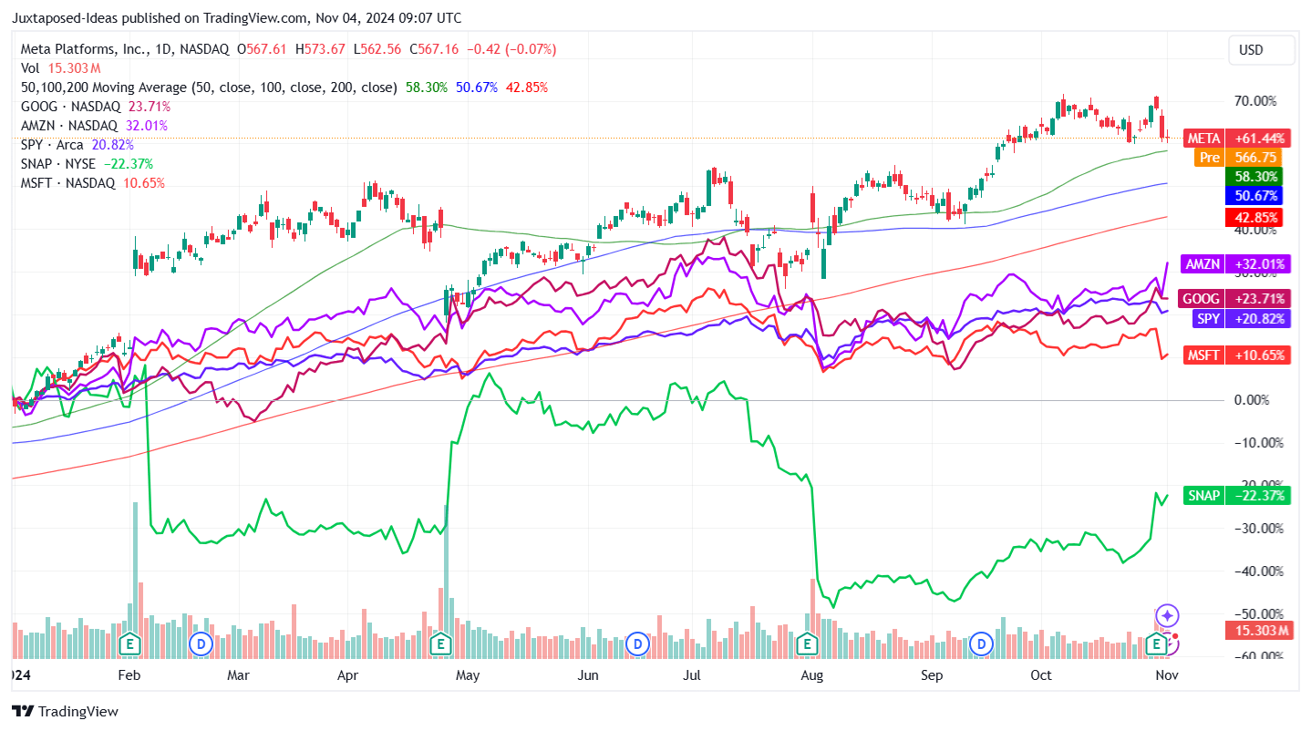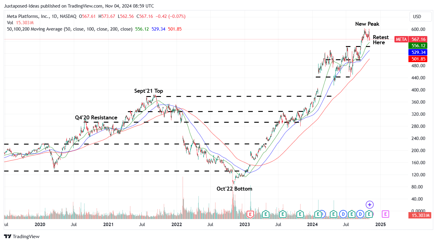 For now, META has had a robust +25% recovery from the worst of the July 2024 correction, with the stock charting new peaks at $590s while running away from its 50/ 100/ 200 day moving averages.