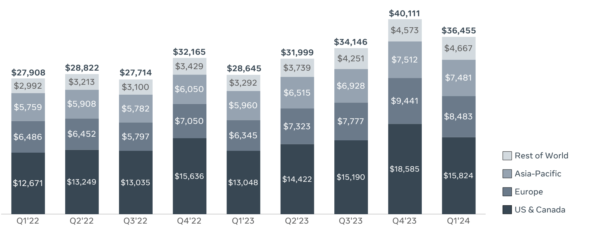 • Meta Platforms, Inc. has achieved strong revenue growth, with $36.5 billion in revenue and a 20% YoY increase.