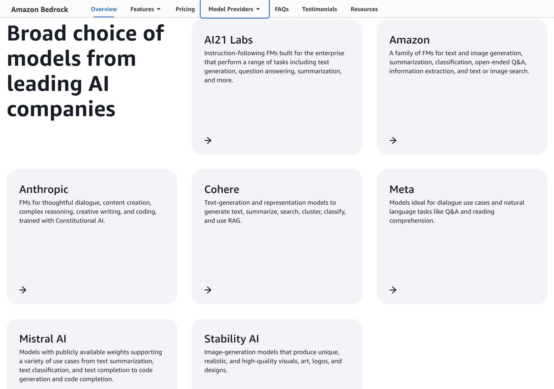 Amazon has repeatedly explained that there are 3 layers of AI, despite the fact that most headlines focus on the top layer when having discussions about breakthroughs like ChatGPT. Amazon Bedrock is a key part of the middle layer, as it allows customers to leverage an existing FM and customize it with their own data. The Bedrock section of Amazon’s website talks about Meta Llama 3.1, saying the models are ideal for dialogue use cases and natural language tasks: