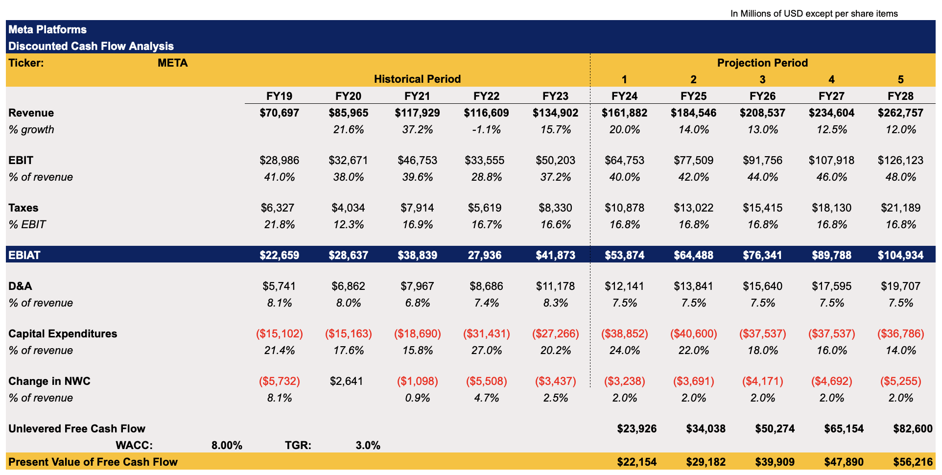 Meta’s DCF Model (Historical Data: Seeking Alpha, Assumptions: Author)