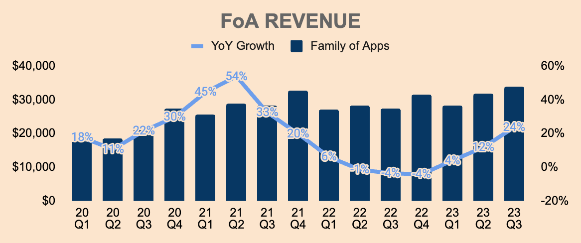 Strong growth was driven by a 24% increase in Family of Apps Revenue, which was $33.9B in Q3, due to: