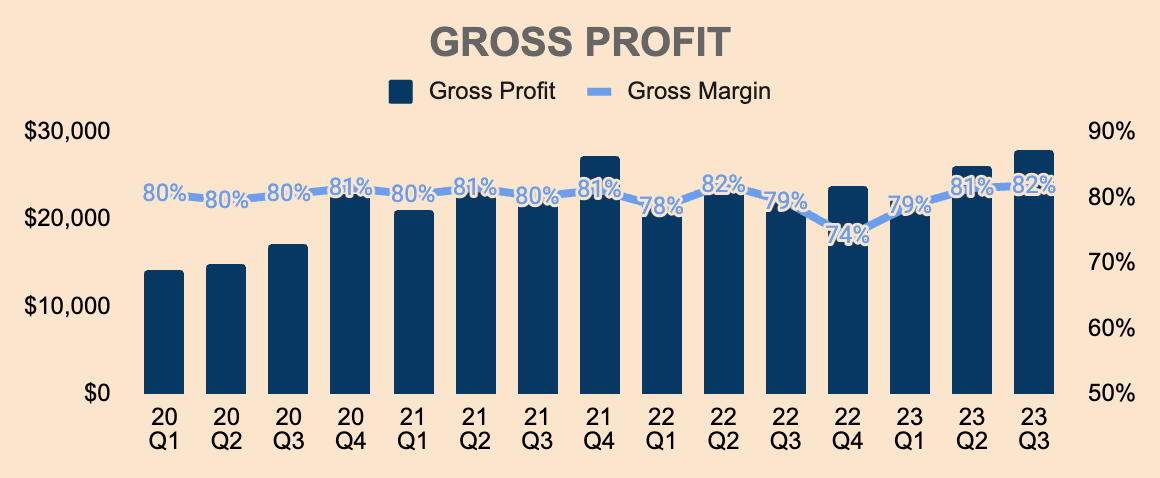 In Q3, Gross Profit was $27.9B, an all-time high for the company. This represents a Gross Margin of 82%, which is an improvement QoQ and YoY, reflecting strong demand, pricing power, and earnings potential.