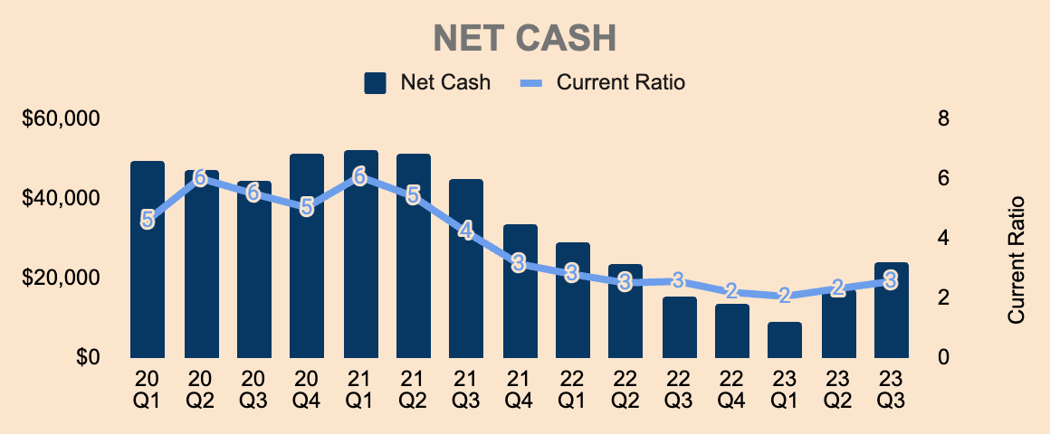 As you can see, Net Cash has been increasing over the last couple of quarters after declining in the better part of 2021 and 2022, so this is good to see. I expect Net Cash to continue to increase as the company focuses on efficiency.