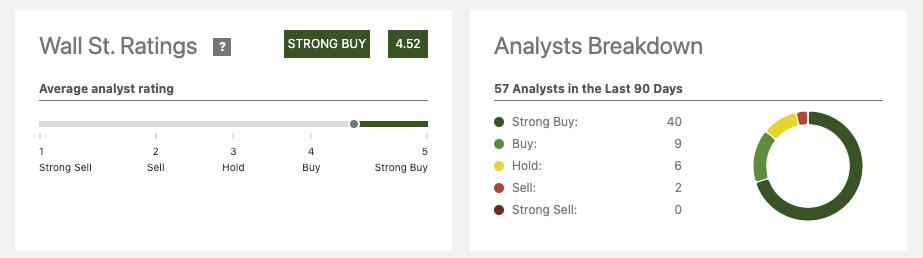 Wall Street is also incredibly bullish on Meta, with an average Strong Buy rating and only 2 Sell recommendations. The average analyst price target is $373, implying a 10% upside from here.