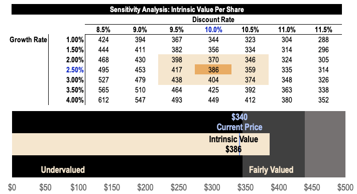 Using a discount rate of 10% and a perpetual growth rate of 2.5%, I have a fair value estimate of $386 for Meta stock, which implies a 14% upside based on the current price of $340.