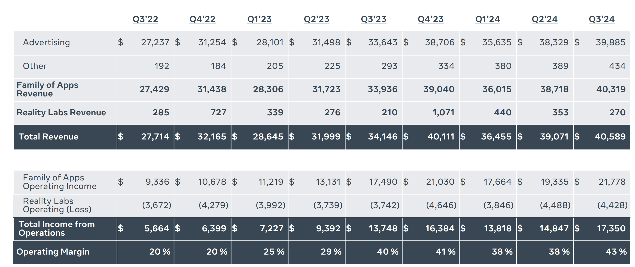 Meta has managed to continue succeeding in its core advertising business as revenue has continued to go up.