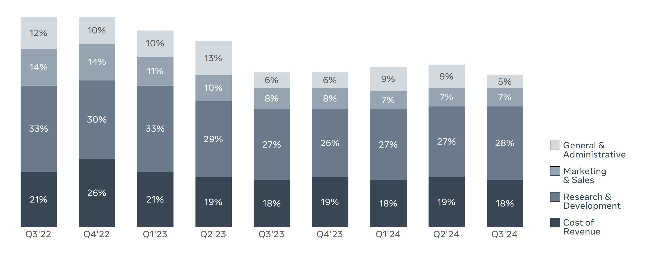 As a result, the company’s costs have gone down substantially. The company’s expenses as a % of revenue were 58% in the most recent quarter, a substantial improvement from 80% 2-years ago. While that’s enabled the company’s profits to virtually double as a result, it doesn’t, in our view, excuse the continued cost of Reality Labs.