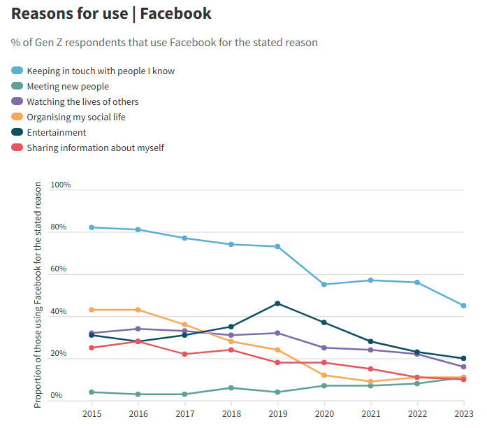 In addition, as shown in the chart below, Facebook has experienced a steady decline in Gen Z’s engagement over the past few years. If fewer young people continue to use Facebook, the platform might face some structural challenges over time.
