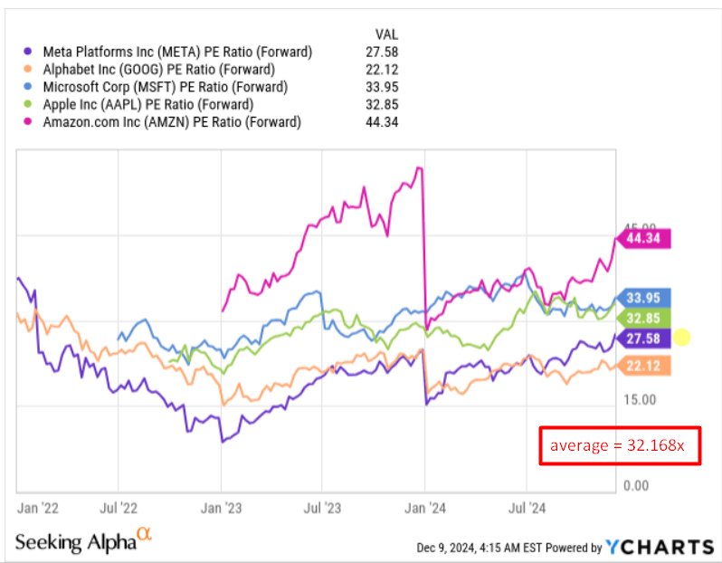 • Despite high P/E ratios, META’s robust financials, including $70.9 billion in cash and $15.5 billion in free cash flow, support continued growth.