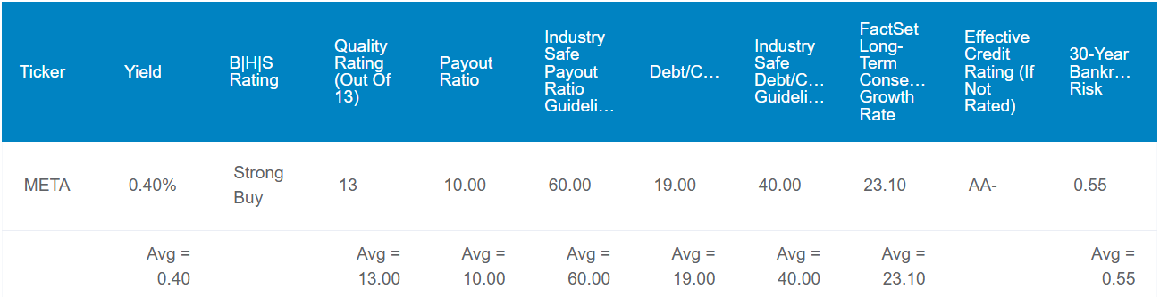 Just as I noted in my previous article, Meta’s 0.4% dividend yield is anything to get excited about at a glance. This is a fraction of the communication services sector’s median forward dividend yield of 3.2%. That warrants an F grade from Seeking Alpha’s Quant System for the metric.