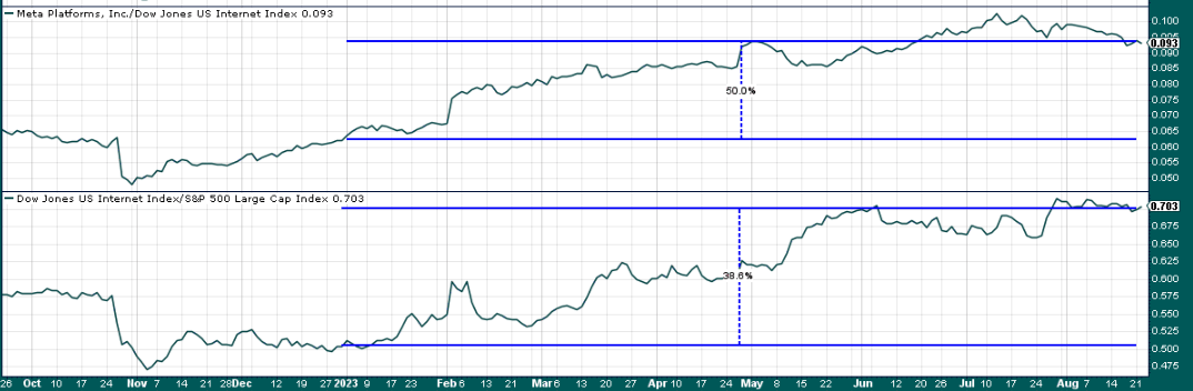 In addition, given that I’m on the lookout for outperforming stocks in outperforming sectors, it doesn’t get much better than Meta.