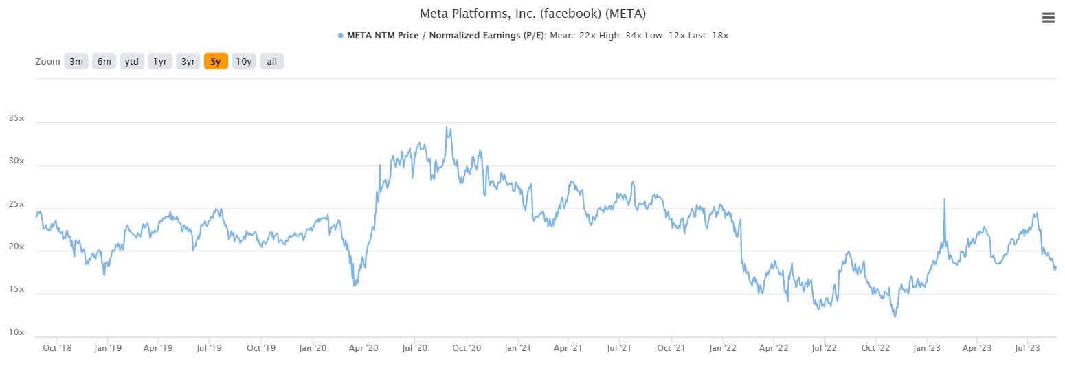 Meta has been on a legendary run this year, so it wouldn’t be weird to see its valuation stretched. However, because of the EPS revisions we’ve just looked at, the stock is actually pretty cheap, amazingly enough.