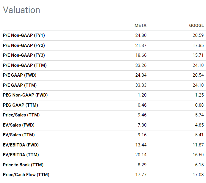 Thus, Meta is not only overvalued based on the absolute metrics but also relative to the major peer.