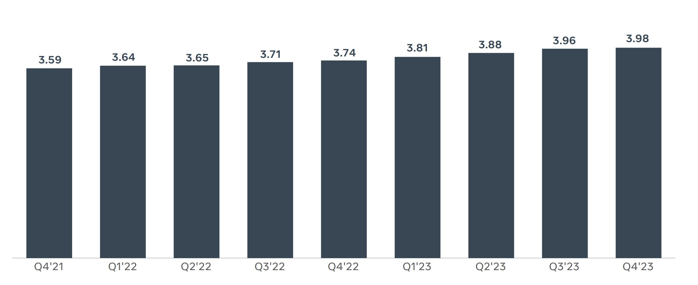 - Meta’s monthly active users were just under 4 billion, showing the strength of its apps and its incentive to grow internet users worldwide.