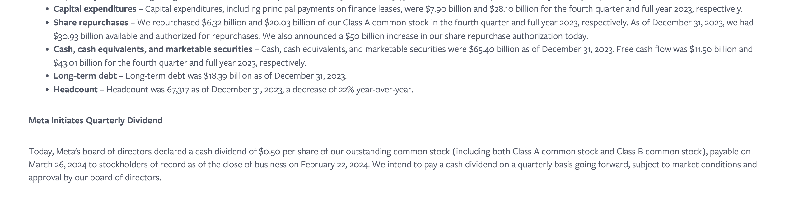 The company is continuing to invest massively in capital expenditures, and artificial intelligence will fund that. Big tech companies are saving big from extending their useable server life, which will help with artificial intelligence savings as well, and we expect 2024 to have abnormally high capital expenditures as a result.