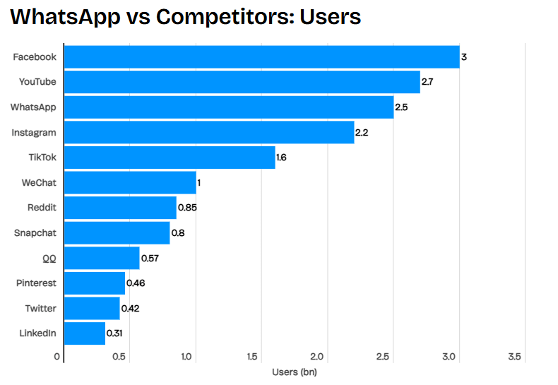 WhatsApp vs Competitors: Users (businessofapps.com)