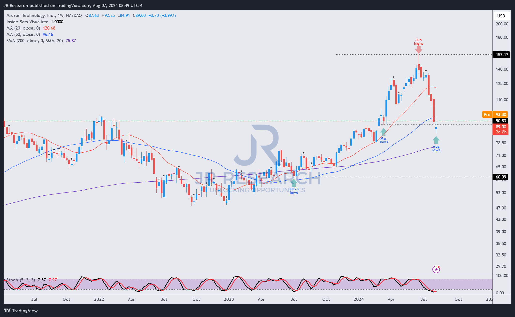 MU price chart (weekly, medium-term, adjusted for dividends) (TradingView)