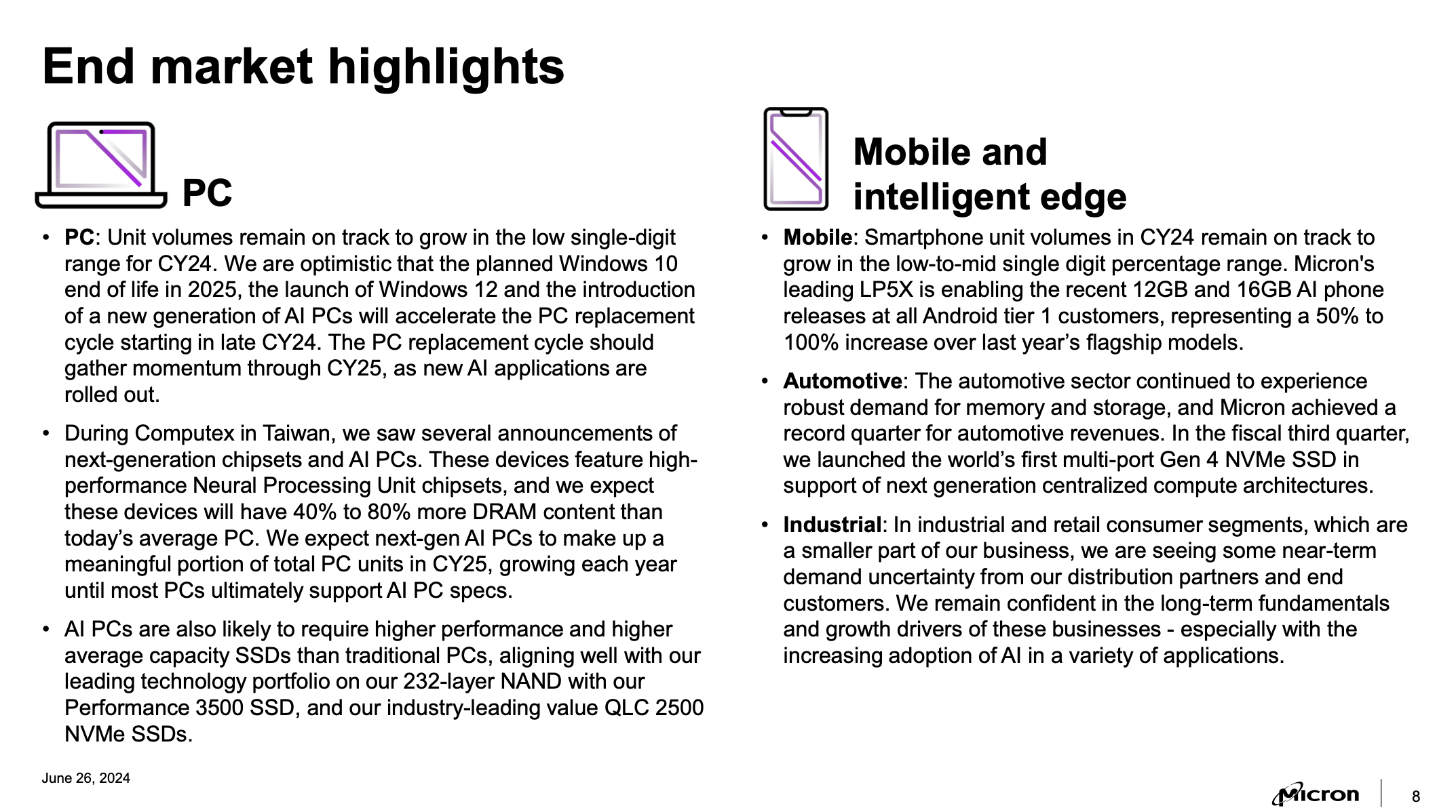 Micron PC and Mobile market overview (Micron FQ3 earnings presentation)