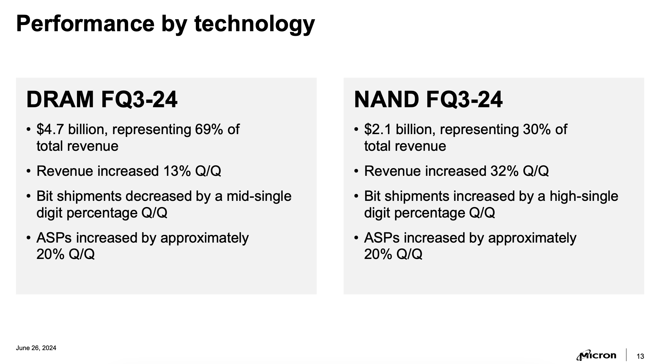 Micron DRAM and NAND metrics (Micron FQ3 earnings presentation)