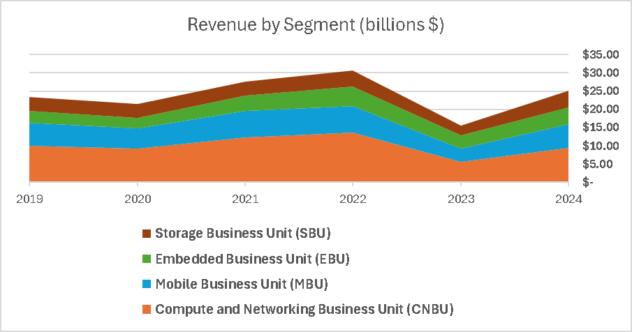 In FY 2024 (twelve months ended August 2024) we saw a shift and normalization of the inventory dynamics that impacted the company last year. Micron’s PC, Mobile, and enterprise customers are coming back after working through their inventories accumulated during the pandemic era. These ‘traditional economy’ customers are adding to the momentum created by AI.